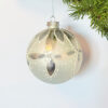 Novogodišnji ukras matirane srebrne boje s cvjetnim detaljem.