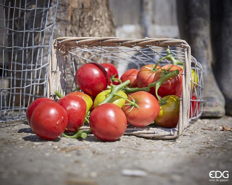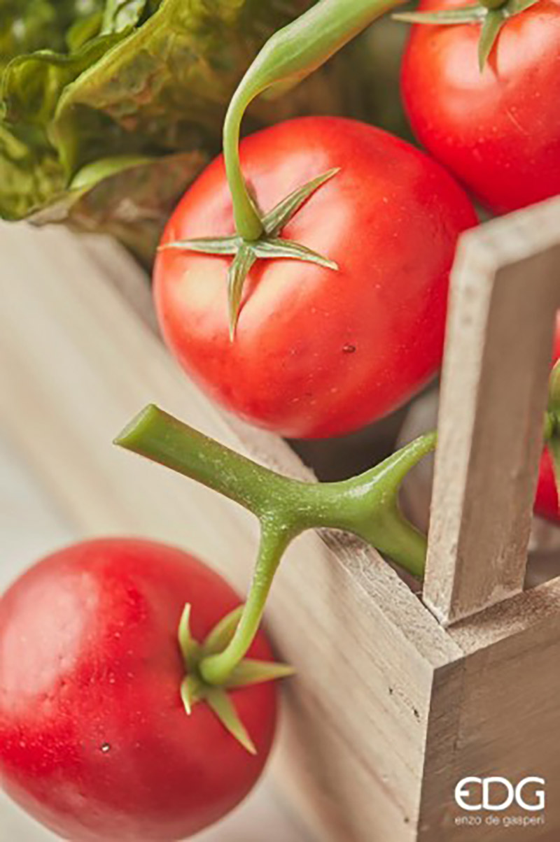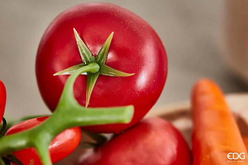 Umjetni rajčice na grančici su divna dekoracija koja svojim prirodnim oblikom i intenzivnom crvenom bojom imitira izgled svježih rajčica. Zelene peteljke i raspored plodova na grančici daju iznimno realističan dojam, zbog čega su odlični kao dekorativno povrće u kuhinji, restoranima, hotelskim doručcima, trgovinskim izlozima ili prilikom fotografiranja hrane.